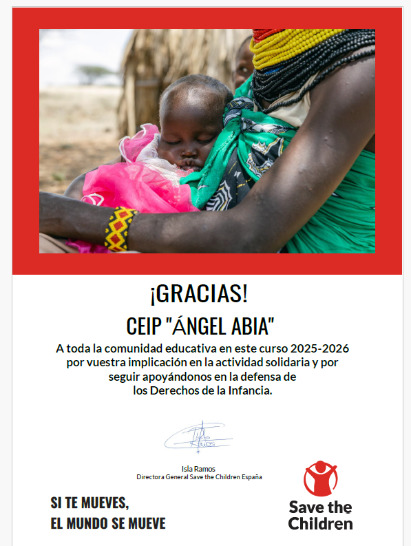 AGRADECIMIENTO A LAS FAMILIAS POR SU GENEROSIDAD EN LA DONACIÓN A SAVE THE CHILDREN 2025-2026